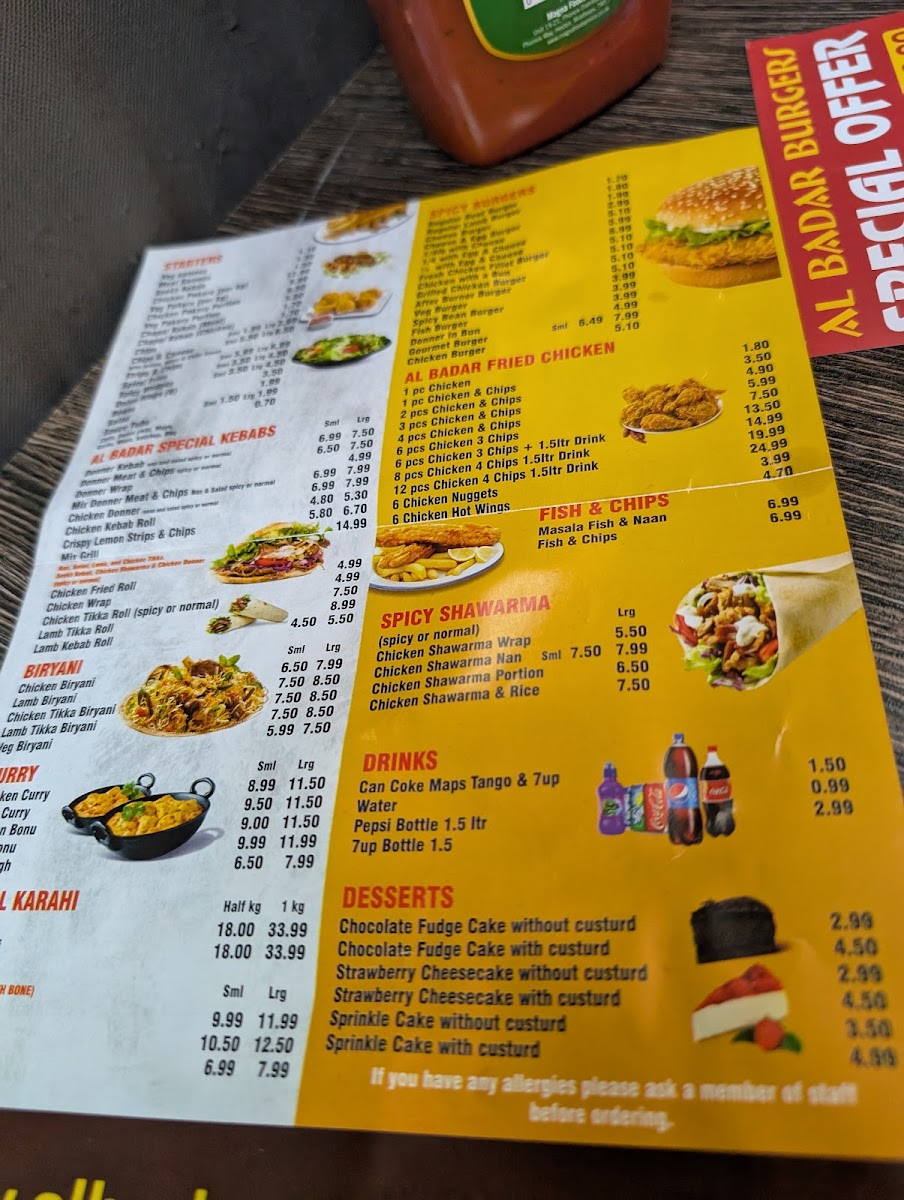 The menu at Al Badar Original offers a selection of fast food items with a focus on both traditional and casual dining options. Visitors can choose from a variety of main dishes, including signature items such as Masala Fish, Chicken Biryani, and Karahi, providing an array of flavorful fast food choices.